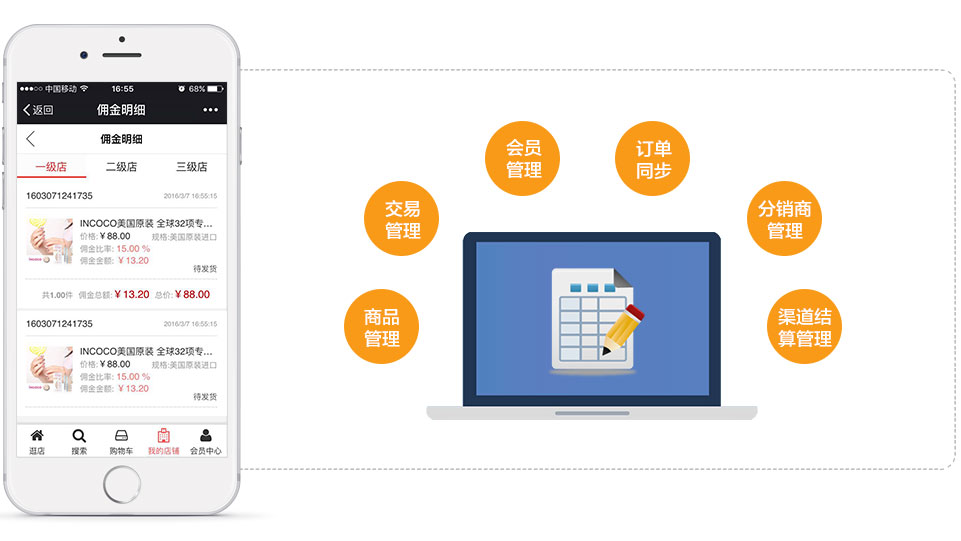汇客为客户提供全渠道合一的移动多用户商城系统,让场景化O2O成为现实,完美融合了线上线下业务,让代理商、分销商、 员工全面实现了移动互联网商业与实体商业的无边界融合。