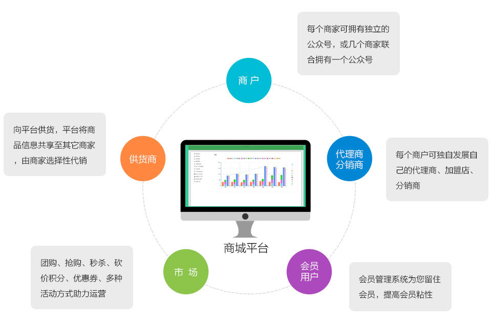 平台全面打通微商,发挥用户在碎片化时间利用社交网络玩转企业提供的产品和服务,同时为企业持续宣传价值。