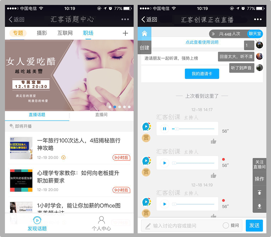 邀请红人做客平台进行讲座,为平台制造话题,达到迅速引流获得盈利的目的。